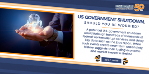 A potential U.S. government shutdown would furlough hundreds of thousands of federal workers, disrupt services, and delay key data such as the jobs report. While such events create near-term uncertainty, history suggests their lasting economic and market impact is limited. The Congressional Budget Office estimates even the longest shutdown — 35 days in 2018–19 — only reduced GDP by 0.4%. Typically, weekly growth losses average about 0.15% when large numbers of workers are furloughed.