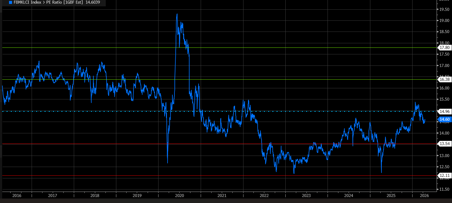 Following the announcement of the MY Value Up programme and drawing on regional precedents, we expect Malaysia to see gradual improvements in key areas such as valuation multiples, earnings growth, ROE expansion, and foreign investor participation. At the time of writing, the KLCI is trading at 14.6x P/E, with CY2026 earnings expected to grow by 10.1% (Exhibit 2). We see significant potential to enhance market appeal and a structurally bullish outlook for the Malaysia market. We maintain a constructive outlook on Malaysian equities, supported by resilient earnings growth prospects, ongoing structural reforms, and potential upside from valuation rerating and increased foreign investor participation.